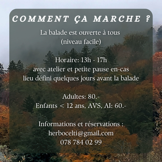 Les balades durent de 13h à 17h, le lieu est communiqué quelques jours avant. Il est possible de participer à une ou plusieurs sorties.